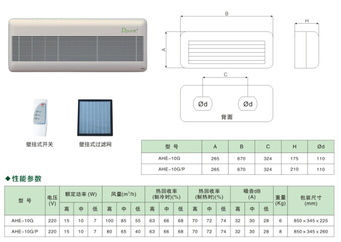 裝修之后首選新風(fēng)系統(tǒng)——壁掛式全熱交換器AHE-10G